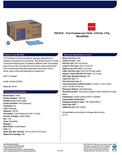 Tork 192181A Foodservice Cloth, 1/4 Fold, 1-Ply, 13" Width x 21" Length, Blue/White (Case of 1 Box, 240 Cloths)