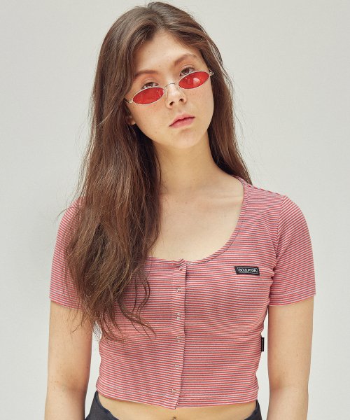 스컬프터(SCULPTOR) 버튼-다운 크롭 탑 [토마토레드/블루]