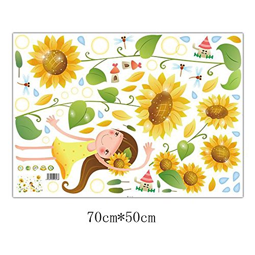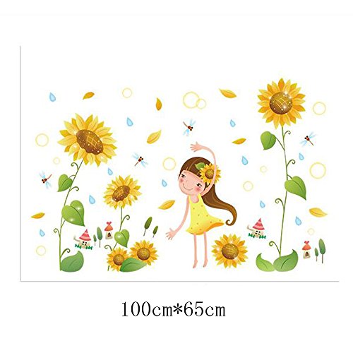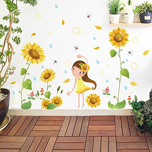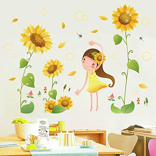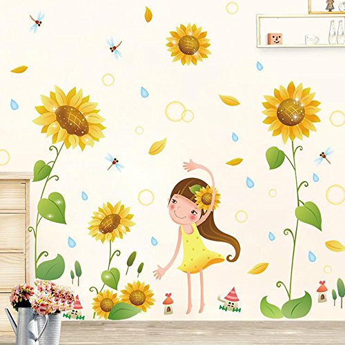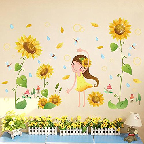 -. Title : Girl Sunflower Flowers Dragonfly Wall Sticker Decal Home Decor PVC Murals Wallpaper House Art Picture Living Room Adult Senior Teen Kids Baby Bedroom Decoration