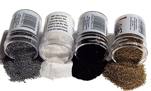 - A VARIETY OF COLORS-You may not want to use GOLD powder all time so this is your chance to try new colors. Now you can try OPAQUE WHITE which is beautiful with the black pen and the GLINT BLACK AND SILVER which add sparkling detail.to your paper crafts. All of the powders are 15 ml.