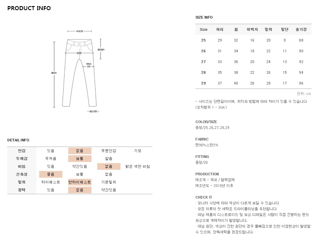 모델은 평소 26사이즈를 입으며,편하게 잘 맞았답니다