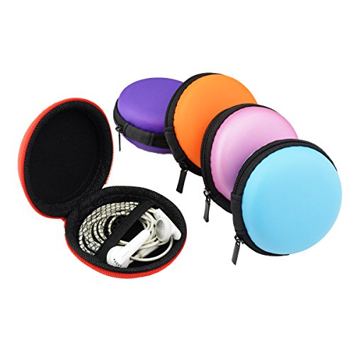 -. Feature : Made with PU+EVA, anti-shock and durable,stylish and useful, easy to clean. It is also with a mesh bag for some small accessorieseasy. Hard case protect your headphones away from wet, dirt and dust. / Diameter: 3.3 inches (8.5cm), perfect to hold earbuds, charging cable, and USB cord Very fit into the pocket and easy to carry, save space and reduce clutter or tangled up. / What you get-5 colors Earphone Cases (No earphones), great for Blue MP3, cable, key, change, coin, battery, memory card, USB flash disk and so on, a multifunctional and portable small bag. / Full zipper enclosure, works for any small things, perfect mini storage case can be put anywhere to keep them safe while traveling or get them tidy in home. / Package include 5pcs Earbuds Case, with 5 different colors in random shipping. Meet your need and interest, let you easier to find and distinguish between different colors,and completely protect your valuable headphones headset earbuds.