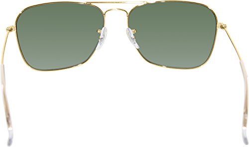 Ray-Ban Sunglasses, style RB3136 Caravan is a rx-able rectangular metal aviator frame. The RB3136 features adjustable nose pads and plastic temple tips for superb comfort. The Ray-Ban logo is featured on the temples. Ray-Ban Sunglasses have scratch/impact-resistant lenses. Size: 55-15-140 mm/58-15-140 mmFeature