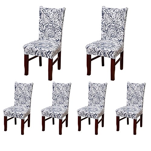-. Title : 6 x Soulfeel Soft Spandex Fit Stretch Short Dining Room Chair Covers with Printed Pattern, Banquet Chair Seat Protector Slipcover for Hone Party Hotel Wedding Ceremony