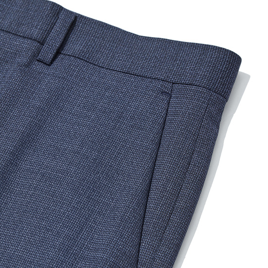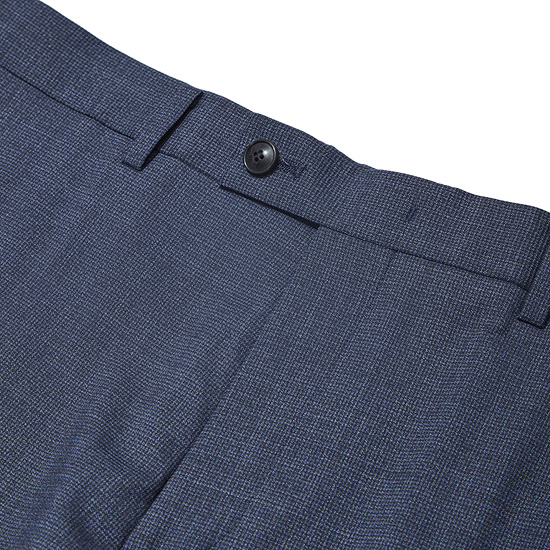 - 딥한 네이비 컬러에 마이크로 패턴을 적용한 남성 수트 팬츠.