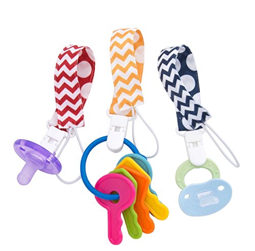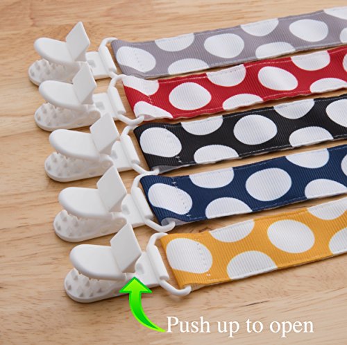 -. Feature : NEW UNIVERSAL DESIGN: Our exclusive set of pacifier leashes are made with the best of quality and wonderful new designs that look even nicer in person with your baby! This set includes 10 different designs and the colors are very rich and also help stimulate your baby's brain. You do not have to worry about what type of pacifier you have because these clips work with all types. Know someone else with a baby? These make for the perfect baby shower gift! / HIGHLY FUNCTIONAL: These pacifier clips have many uses for your boy, girl, newborn, or toddler! These pacifier clips work great with teething ring toys, blankets, drool bibs, or even on your baby's stuffed animal or stroller. Our pacifier clips are very unique because we had them custom made to be long to allow you to be flexible with using them on blankets shirts and many other things without worrying about them being pulled off. / QUALITY: You prefer quality over quantity any day, right? Why not have both! Not only do we offer an absurd SET OF 5 pacifier clips, but we also make sure you are getting great quality as well. Our pacifier holders are made out of 100% polyester. Many people assume cotton would be better, however, cotton gets wrinkled quickly when you wash them and they also shrink! Our clasps are extremely strong and durable to avoid dirty pacifiers, but gentle enough to protect your baby's clothes. / SAFETY: Safety is key, especially when your little loved one is involved. You are in safe hands with BaeBae Goods, as our product is BPA, toxic, lead, phthalate, and latex free. Our clasps are also made out of strong and durable plastic to keep your baby safe. We avoided metal clasps because they can tear your baby's clothes and might be toxic. / SATISFACTION GUARANTEE: Here at BaeBae Goods, our customer satisfaction means everything to us. We already know you and your baby are going to love these pacifier clips, so this is just a reminder that you don't have to commit if you don't like them. If our pacifier clips aren't everything you wanted and more you can go ahead and return them no questions asked. You are backed by our 90 DAY, no questions asked, money back guarantee! Click the buy button now, RISK FREE!