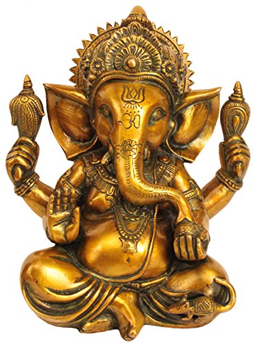 - Lord Taj Ganesha Figurine Brass Handmade Sculpture Hindu Deity Ganesh Home Decor