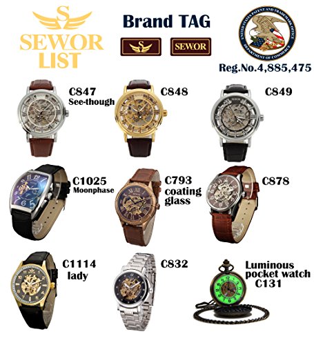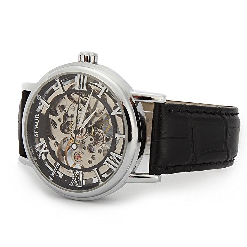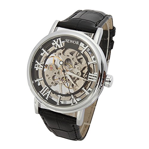 -. Title : Sewor Men's Steampunk Mechanical Analog Watch Silver