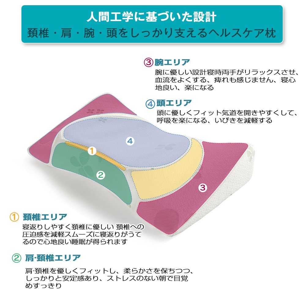 Supports a low repulsion pillow based on ergonomics, a health care pillow that does not burden on the body, supports sideways, firmly supports the cervical spine, head, arm, shoulder, so the burden does not concentrate on one point,