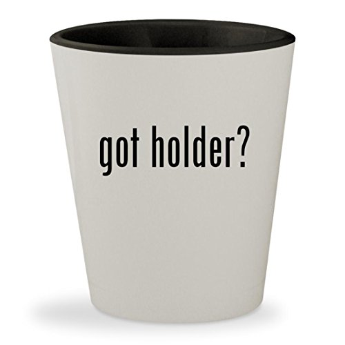 -. Title : got holder? - White Outer & Black Inner Ceramic 1.5oz Shot Glass