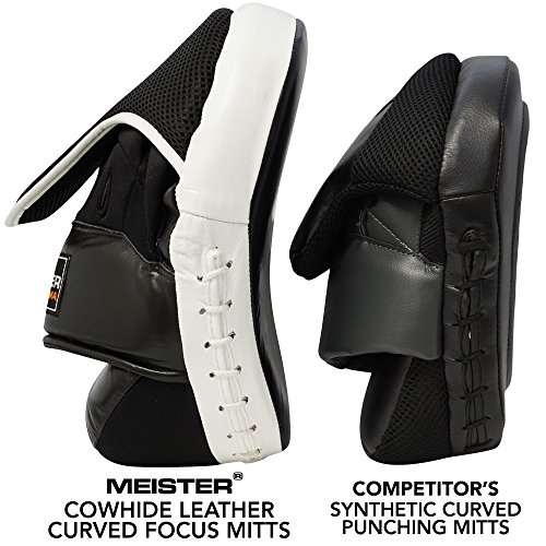 Meister Cowhide Leather Curved Focus Mitts w/ Wrist Support (Pair)