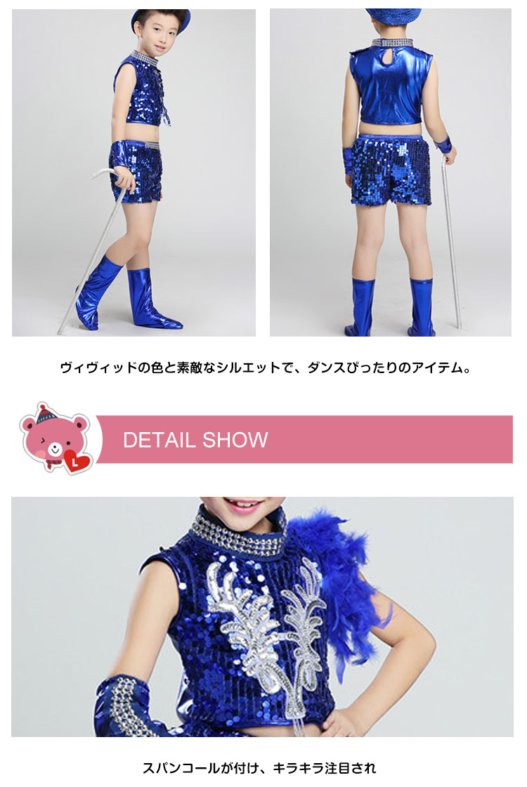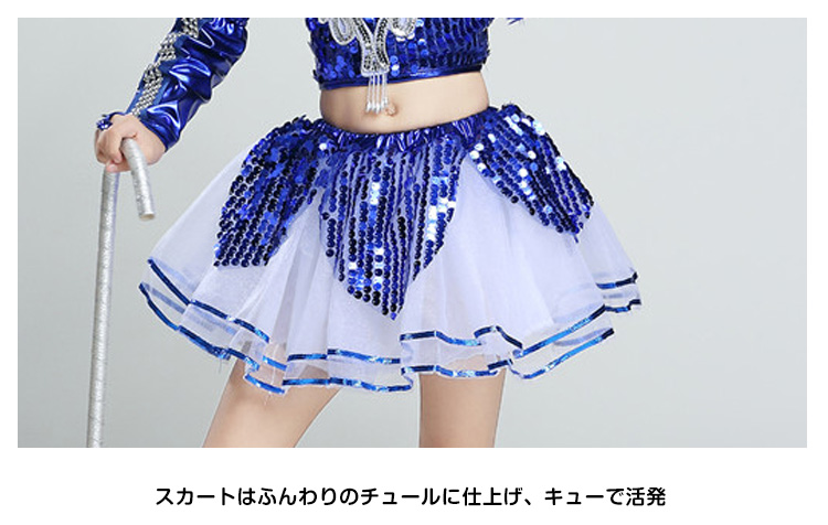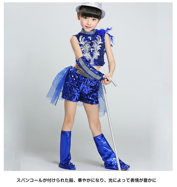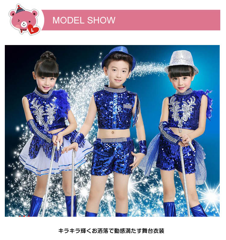 | キラキラ輝くお洒落で動感満たす舞台衣装スパンコールが付けられた服、華やかになり、光によって表情が豊かにへそ出しのデザインで、クールでヘルシーのイメージに女の子服装は二タイプがあり、お好みによって、選び放題。ヴィヴィッドの色と素敵なシルエットで、ダンスぴったりのアイテム。 | |
