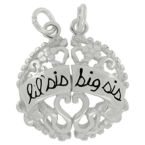 -. Title : Sterling Silver Big Sis/Lil Sis Split Charm Pendant (21 x 20 mm)