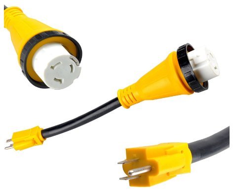 For use when RV is equipped with 50 AMP twist lock power inlet and needs to plug into 15 AMP power source,and do not exceed the rated current and rated voltage