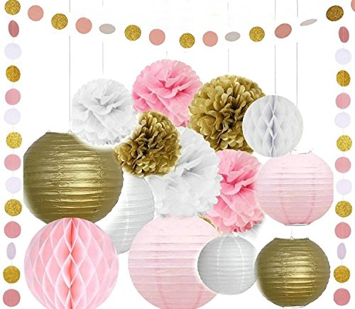 Since Pack of 16 8''(20cm) Gold Pink White Paper Crafts Tissue Paper Honeycomb Balls Lanterns Paper Pom Poms Birthday Wedding Party Decoration