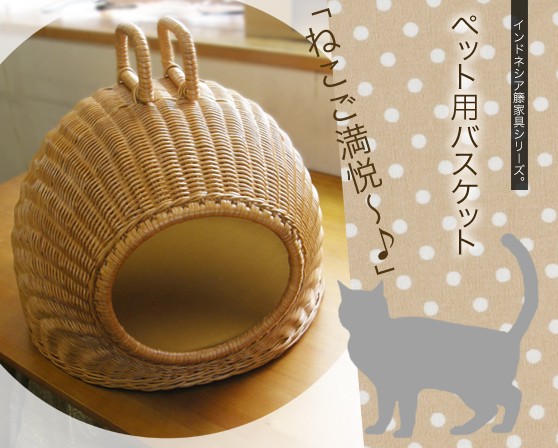 インドネシア籐でできたペットが安心して休める犬や猫用のバスケットです。