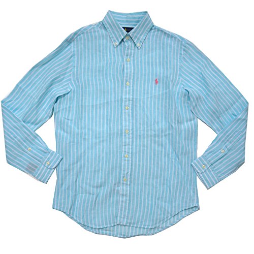 Polo Ralph Lauren Mens Ocean Washed Linen Buttondown (Large, Aqua/white)