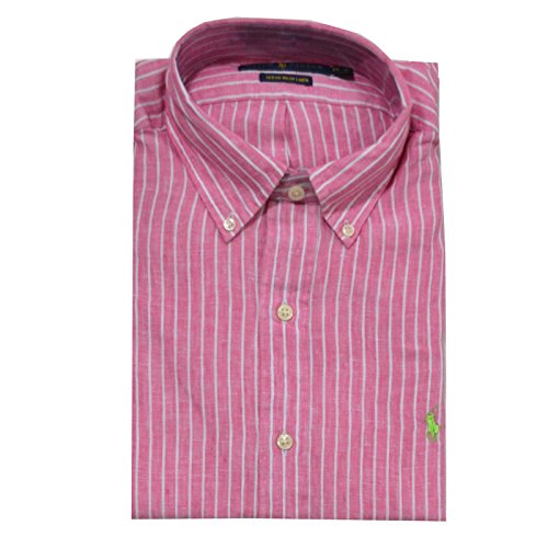 Polo Ralph Lauren Mens Ocean Washed Linen Buttondown (Large, Pink/White)