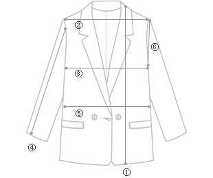 サイズ ①総長 ②肩 ③胸 ④小売 ⑥アームホール