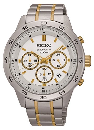 -. Title : Seiko #SKS523 Men's Two Tone Stainless Steel White Dial Casual Chronograph Sports Watch