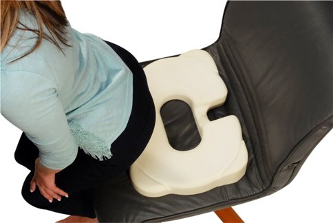 - Feature : Contour Products Kabooti Coccycx Foam Seat Cushion has a large coccyx cutout to reduce tail bone pressure; provides comfort during prolonged sitting / Center oval cut-out provides relief for medical conditions like lower back pain and comfort for hemmorhoids and recent surgery / Tapered front edge reduces pressure points underneath thighs and easily accommodates table, desk and driving positions / Includes a removable, machine washable fabric cover / Includes 1 year manufacturer's warranty