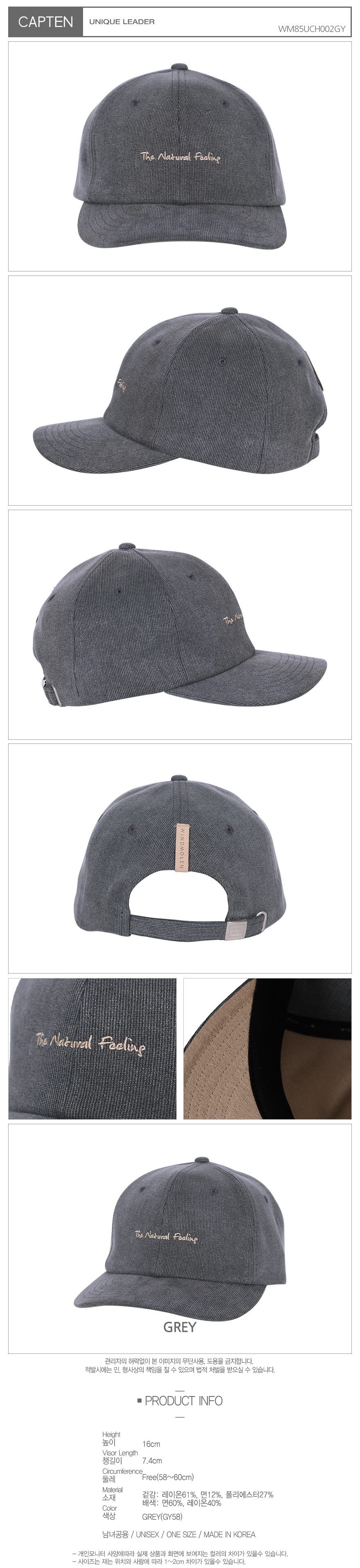높이16CM,챙길이: 7.4 둘레: Free(57~59cm)