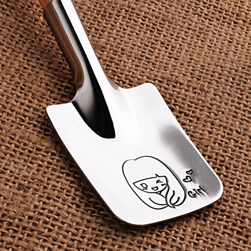 kilofly Stainless Steel Shovel Wooden Handle Valentines Day Love Spoon, Set of 2