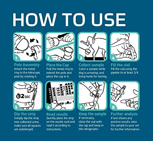 -. Feature : Quick, simple, reliable at home general wellness test for dogs / Detects the four most common conditions affecting dogs of all ages (high glucose, kidney conditions, UTI and blood in urine) / 4 Test results in up to 60 seconds, with a quick and clean collection method / Innovative and clean twist on the standard industry method for canine urine collection / Noninvasive & veterinarian approved