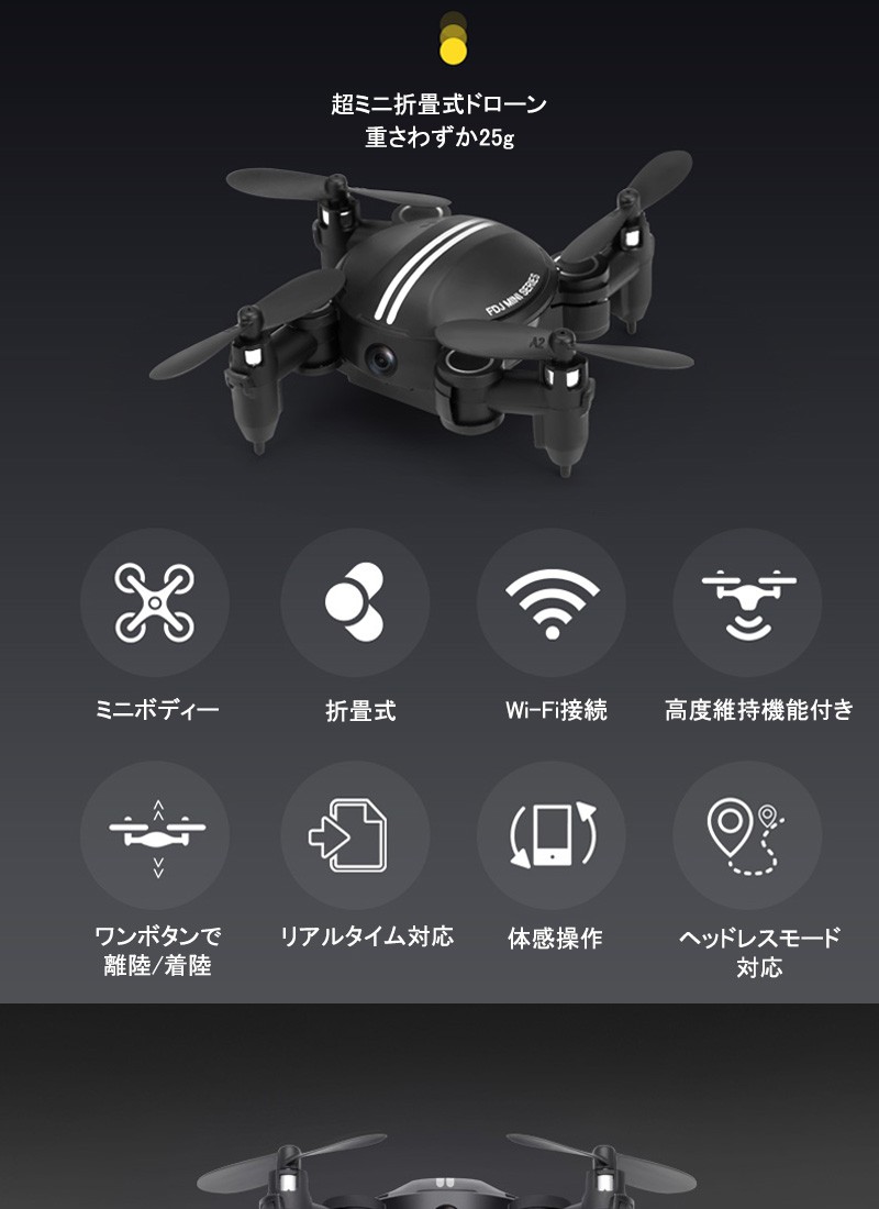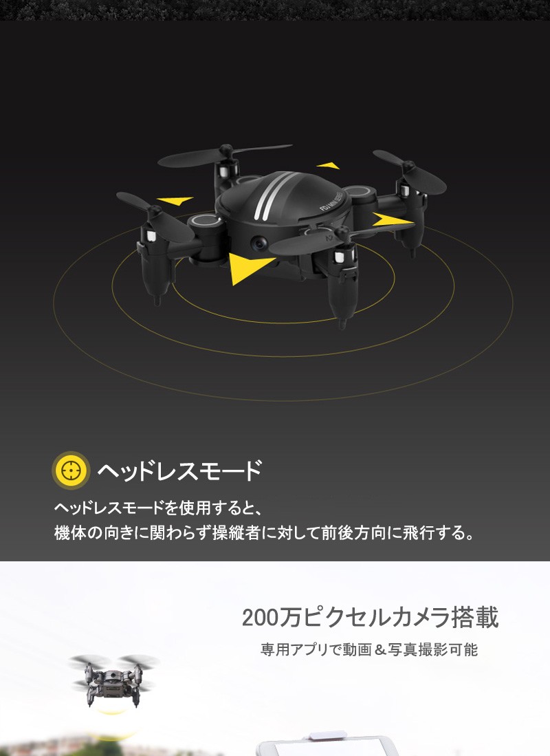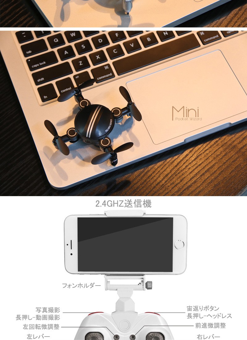 | 商品説明 | 高度維持機能付き、操作しやすい!360°宙返り/ヘッドレスモード/LED搭載! |