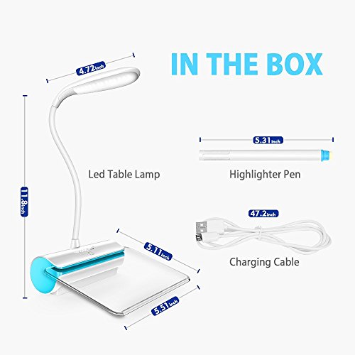 Desk Lamp,Walkas Lamp with Message Board Rechargeable LED Reading Lamp Touch Sensor-Blue