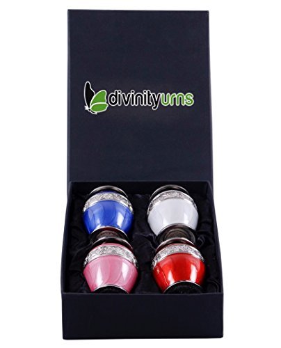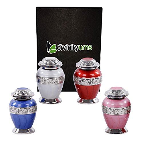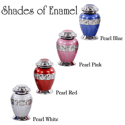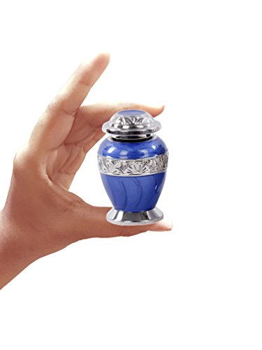 Divinityurn's Shades of Enamel is elegant and affordable CREMATION KEEPSAKE . The urn is made from solid brass and the perfect lacquer coat to preserve its brilliance. It comes with top opening with a threaded lid. The silver bands on items are uniquely engraved by hand for each urn to show beautiful detail giving the MINI URN a unique look to each finished product. Our TOKEN URNS are handcrafted uniquely by an ancient process called sand casting. This KEEPSAKE URN holds up to 3 cubic inch of cremains and approximate measure is that 1-pound weight prior to cremation equals 1 cubic inch after cremation . Dimensions: 3-inch-high x 1.5-inch diameter. All of our urns are in our warehouse and ready to ship as soon as payment is cleared. Usually we ship within one business day of receipt of payment. 100% Satisfaction Guarantee ♦SATISFACTION→ We carry elegant and high quality products and we trust that you will be very happy with the quality and creative design of our products ♦BEST PRICE GUARANTEE ♦EASY RETURN→ If you do not like the product after arrival please contact us by contact form and report the issue within 3 days after product arrival and we will refund your money after product is shipped back to us. But, once product is used we will not accept return due to the personal nature of this productFeature