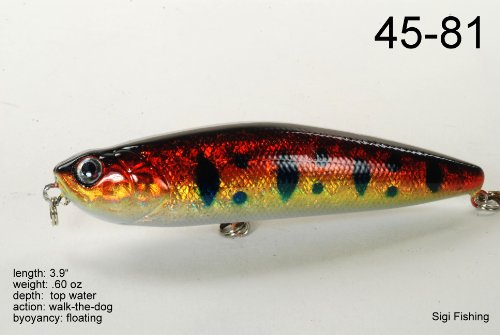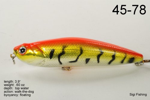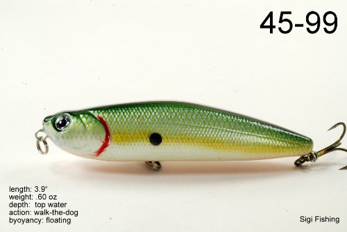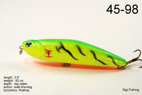 -. Binding : Sports -. Brand : Akuna -. Feature : Color Selection / Wobble Action / Walk the Dog Stickbait / Exceptional colors and body effects / Great Gift Idea -. Label : Blue Penn Solutions, LLC -. Manufacturer : Blue Penn Solutions, LLC -. Model : BP-5-FLA-45-A-P -. MPN : 5FLA45 -. PackageQuantity : 5 -. PartNumber : 5FLA45 -. ProductGroup : Sports -. ProductTypeName : SPORTING_GOODS -. Publisher : Blue Penn Solutions, LLC -. Studio : Blue Penn Solutions, LLC -. Title : Akuna Pack of 5 Ratt'l Top Series 4 inch Topwater Walk The Dog Fishing Lure