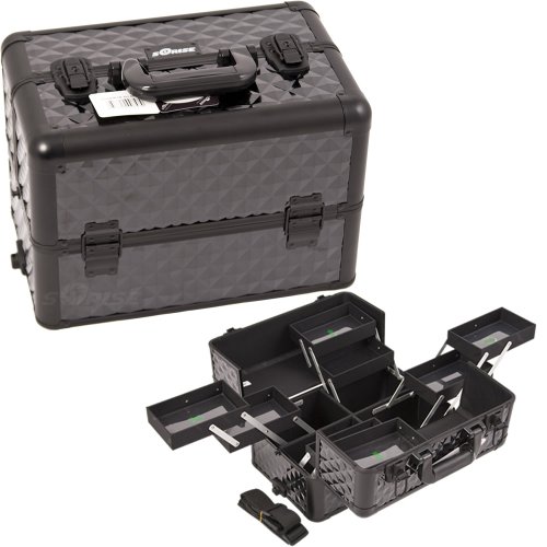 Sunrise E3306DMAB BlackDiamondInterchangeable8-Tiersextendabletrayprofessionalaluminumcosmeticmakeupcraftstorageorganizercasewithmultiplecompartment-E3306, Black