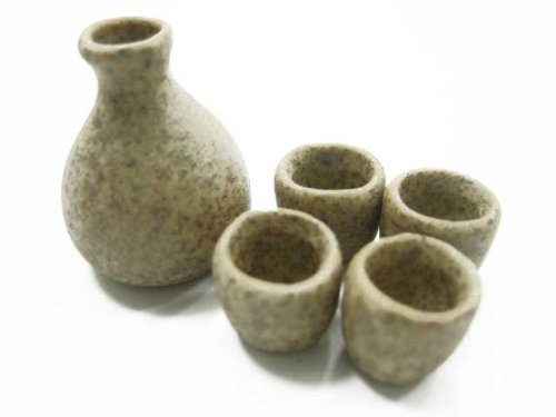 -. Title : Dollhouse Miniature Ceramic 5 Japanese Kitchen Tea Set Cups & Pot Deco - 8859