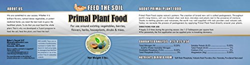 - Feature : Primal Plant Food is extremely fine dust. The large surface area makes for fast reactions in plants / Most potting mixes are short in silicon-no longer! Volcanic ash provides an abundance of silicon / Sprinkle 2 tbsp per square foot around trees, bushes, flowers, and house plants; repeat midseason / Full spectrum nutrition makes food taste better-this is important for leafy greens and wheat grass / Powdered seaweed is rich in iodine. This makes Primal Plant Food a good tool for biofortification