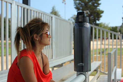 The Aquatix Sporty 32 oz Double Wall Insulated Stainless Steel Water Bottle is perfect for use at the gym, at the office, around your house and anywhere you need to take your beverage of choice with you. Made from durable and sturdy PREMIUM QUALITY, Top Chef 18/8 FOOD GRADE STAINLESS STEEL, this Aquatix Sporty 32 ounce water bottle is a great eco friendly sports bottle. The double wall insulated water bottle is PERFECT for carrying while walking, hiking, camping, use at the gym or just on the go- as it fits MOST car cup holders. No more spills and messes while driving! Ditch those plastic water bottles! GO HEALTHY with this BPA Free, FOOD GRADE stainless steel water bottle that holds a large capacity of liquids 32 fluid ounces and no longer worry about toxins and chemicals leaching into your beverage. Drink crisp, clean, healthy and refreshing drinks from Your Aquatix Water Bottle every time. Just Fill and Go! This sporty bottle features a flip top spout drinking mechanism allows the ease of staying hydrated even while on the go! The flip cap top provides single-handed drinking ability and is perfect for your busy life on the go! Stay hydrated and DRINK MORE WATER with this large capacity 32 ounce water bottle. Double vacuum insulated wall construction contributes to hot teas, soup, coffee or other blends being consistenly hot for up to 12 hours. And, for cold water, smoothies, soft drinks, or anything you may need very cold, 24 hours of insulated confidence, guaranteed cold, period! The bottle will not "sweat", meaning it will not create condensation which may leave a "ring" of liquid on your expensive buried walnut side table. Easy to hand wash or clean, NO aftertaste after cleaning. COLD LIQUIDS or HOT LIQUIDS! This is a double wall insulated water bottle that is made of 18/8 food grade stainless steel water bottle! No other bottle has all the features of our Aquatix Sport Bottle!Feature