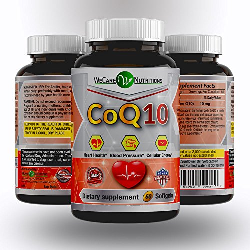 Studio : WeCare Nutritions Publisher : WeCare Nutritions Binding : Health and Beauty Product Description Coenzyme Q10 is an Antioxidant made in the human body. CoQ10 is needed for basic cell function. CoQ10 support your immune and nervous system, help maintain healthy blood pressure, increase your energy and stamina levels, boost cardiovascular health, and reduce the normal signs of aging. CoQ10 levels decrease with age and certain diseases. Some prescription drugs may also lower CoQ10 levels. CoQ10 in the body can be increased by taking CoQ10 supplements.* CQ10 hepls Improve cardiovascular function, Steady the heart beat, Prevent Hypertension, Boost physical energy and Soothe migraines and chest ache. CoQ10 is a nutrient that supports heart function and promotes energy production in cells.* CoQ10's energizing antioxidant properties may enhance vitality across many body systems, supporting brain health, immune performance, skin health, exercise capacity, gum health and more.* CoQ10's benefits extend to support the entire cardiovascular system: It helps maintain blood pressure (already within normal range), healthy circulation and blood vessel integrity.* 0