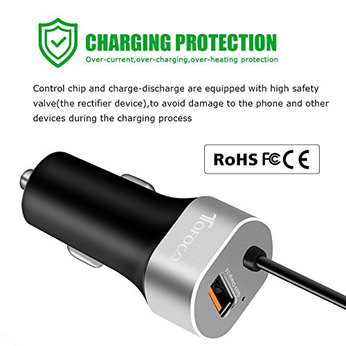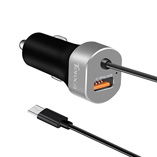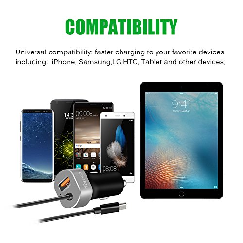 USB Type C Car Charger 36W, Quick Charge 3.0 [USB+Type C with wire]PowerDrive USB C Phone Charger for Samsung Galaxy S8,Macbook,Google,Chromebook,iPhone 7/6,iPad Pro/Air 2/mini, LG, Nexus, HTC