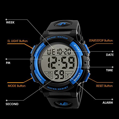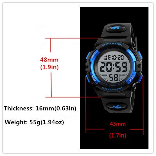 Multifunction: Waterproof, shock resistant, alarm, chime hourly, stopwatch, EL backlight, auto calendar,12/24H time, display hour, minute, second, month, day, week, And the boys sports watch is digital and electronic. This watch is very suitable for men and women whose wrist is thin and also kids, . What are you waiting for? It's very convenient for you to use in your daily life.