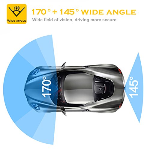 ✔【HD image】 Dash camera can work in Single Front Cam mode or Front and Rear Dual Cam Mode;The using advanced Sony sensor, 7 high transmittance glass lens,Top Quality 1080P camera record full-HD Video, super wide front 170 degree and rear 145 degree wide angle; 5 "IPS HD screen;gift 32GB TF card(Supports a maximum of 32G ), ready to use right out of the box.