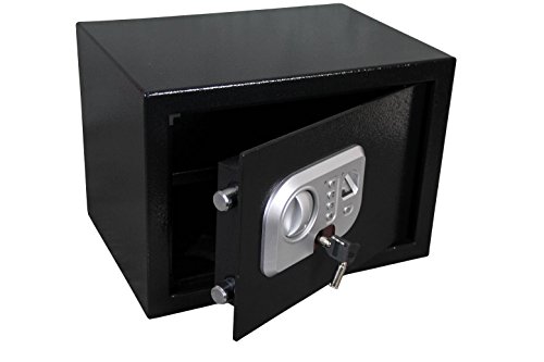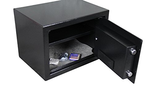 - Feature : Solid steel construction digital electronic safe box; Over-all dimensions: 13.8" W x 9.8" D x 9.8" H / Opens with digital PIN or included override key or Fingerprint / Add or delete Fingerprints easily / Hidden anchoring design--secure to wall or floor without visible bolts (heavy-duty bolts included) / Also including 4xAA batteries, one pad, bolts, and keys.