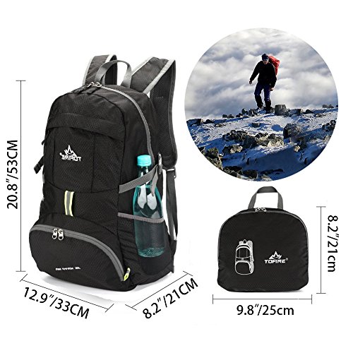 -. Feature : 【Durable and Comfortable】This packable travel backpack is made of high quality lightweight and waterproof nylon fabric and the stress points are reinforced with bar tacking so as to provides strength and long-lasting performance. / 【Brand Zipper and Multi Compartments】SBS Brand metal zipper are used in this foldable hiking daypack to make sure a great opeartion and long lifetime.Features a classic shape with several pockets for storage and organization.Two front zipper pockets to hold small accessories and two side pockets for water bottles or umbrellas. / 【Lightweight(0.91LB) and Roomy(35Litre)】A Lightweight travel backpack weighs only 0.91lb, but it is roomy. The main compartment has 35L of space that can hold a size like 13 inces laptop with spare space.The unfold size 20.86x13x8.3 inches fits the American Airelines carry-on size. / 【Compact and Portable】Folds into inner pocket to fit anywhere. Unfolds from pocket to backpack. A must-have packable hiking backpack on any trip and a great gift for anyone. The dimensions of fold size is only 9.8x8.3x1.2 inches. / 【Safety and Widely Use】The whistle buckle will help you when you under emergency suiation. Reflective strips for safe traveling at night.This is a well design outdoor packable daypack for vacation, travel, cycling, school, camping and hiking.