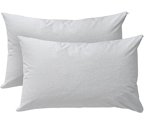 King Size Waterproof Pillow Protectors - Bed Bugs / Dust Mites / Allergen Proof - Cotton Terry Zippered Cases / Covers / Encasements 20" x 36" -10 Year Warranty - Vinyl Free (King)