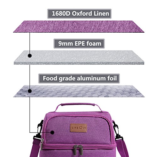 COMPREHENSIVE DESIGN : Seamless one-piece aluminum lining elimates leakage problems, classic adult looking grey appearance with a padded handle and a detachable/adjustment shoulder strap that you could carry it in 3 modes?crossbody, shoulderbag and handbag, totally customizable for your different needs.