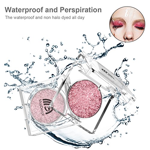 - 3.Long Lasting & Waterproof: Different from others, MojiDecor Eyeshadow is Long Lasting and Waterproof. Our Testers wear it for the whole day, it has no difference for the moment they wear! Besides, with it, you don’t need to worry with the water places, that means, you can wear it to swim! 4.Multifunction: It is not only a Glitter Eyeshadow, it can also work as Powder for your lip or face.( Sensitive skin is also suitable )