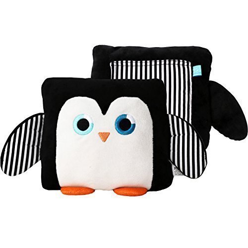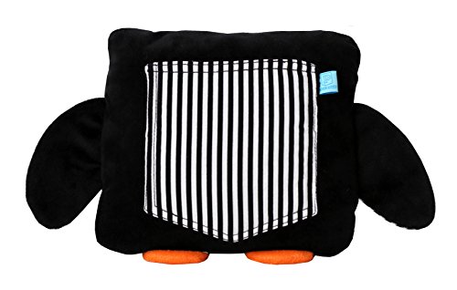 -. Feature : Small (7.5" square) plush penguin pillow with black and white striped cotton fabric details / Useful 4x5"plush-lined back pocket to hold a phone, notebook, eyeglasses, or tooth fairy goodies / Embroidered two-toned blue eyes, and sweet orange beak (and plush little feet) / Designed by young entrepreneurs, Sydney (16) and Toni (13) from Palo alto, California / Professionally hand sewn with the highest quality materials and care, a wonderful gift