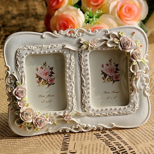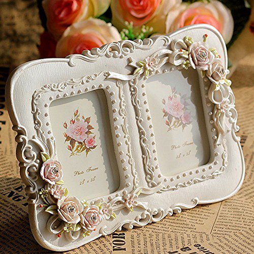 -. Feature : TOP RATED PHOTO FRAME: Stain resistant PVC(no glass) mirror vintage photo frames. The total hand painted picture frame size is: about 7.9x5.5inch, and the inner picture frame size: 2.5x3.5 inch(two box) / Elegant resin white photo frame craft with excellent cut, the picture frames will make your room look more elegant and beautiful / Excellent hand painted polyresin craft frames,every our resin picture frames will need a series of manufacturing processes to make sure the frame in high quality. (Please notice that the colour is totally hand painting, some times it will little difference with the picture showing, if you want a exactly the same color, please think second to buy it.) / It is a wonderful frame gift for grandma, mothers, friend, girlfriend and someone you love. Just using the frame to frame the beautiful moment of your life. / Fashionable and trendy home decoration photo frames, lighting your room and make your home look more lovely and sweetly.