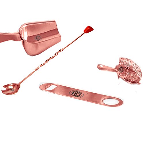 -. Title : King International 100% Stainless Steel and Copper Bar Spoon 29 cm,Ice Picker,Ice Scoop, 24 cm,Bottle Opener 14 cm 14 cm And Bar Strainer 15 cm, Set Of 4 Pieces