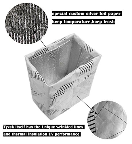 Tyvek itself has a thermal insulation UV performance, inside the special custom silver foil paper, double effect,keep temperature,keep fresh.The top four magnet design is equivalent to handle, not only can ease the hand fatigue, you can also fold down the food in a closed space, keep fresh.