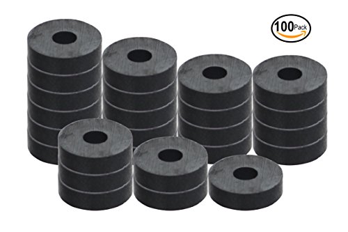 RamPro 100-Piece Powerful Magnetic Round Ferrite Magnet Discs with ¼” Dia. Holes (3/4" x 1/4") – Universal Use on Frigidaire’s, Bulletin Boards & Arts-Crafts Projects, Etc.